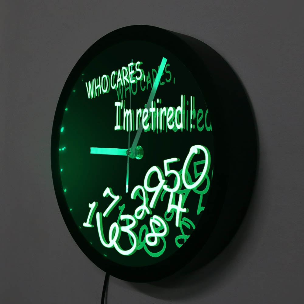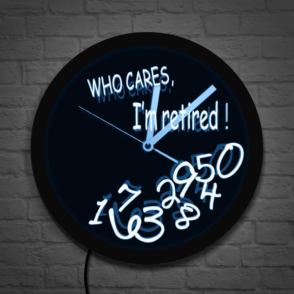 Oletko vihdoin saavuttanut ansaitsemasi eläkepäivät? Silloin tiedät, että perinteisten kellojen tiukat aikataulut ovat mennyttä! Tämä ainutlaatuinen Hauska eläkeläisen LED-seinäkello on täydellinen tapa juhlistaa uutta vapauden aikakautta. Unohda minuuttiviisarit ja sekuntikellot – meidän LED-kellomme julistaa ylpeästi: "WHO CARES, I'M RETIRED!" (KUKA VÄLITTÄÄ, OLEN ELÄKKEELLÄ!). Kelloaika on esitetty hauskoilla, hajallaan olevilla numeroilla, jotka symboloivat täydellisesti sitä, ettei eläkepäivillä ole kiire minnekään. Anna pehmeän LED-valon luoda rauhoittava tunnelma kotiisi ja muistuttaa sinua jokaisena päivänä siitä, että voit tehdä mitä haluat, milloin haluat.