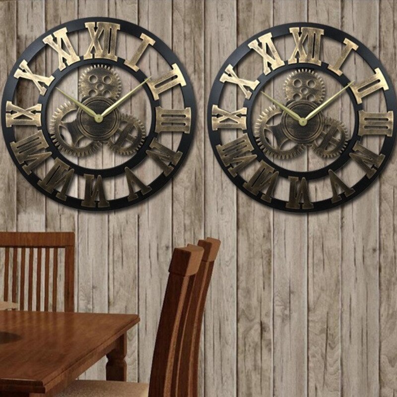 Tee Tilastasi Ikimuistoinen Tällä Isolla Teollisella Seinäkellolla Kultaisilla Rattailla.
