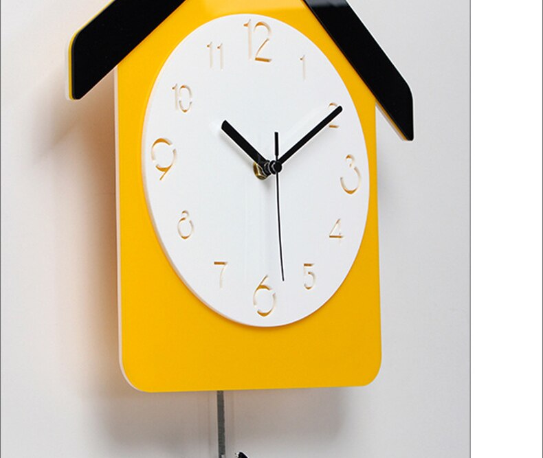 Keltainen moderni käkikello heilurilla: Anna aikaa kotiisi!
