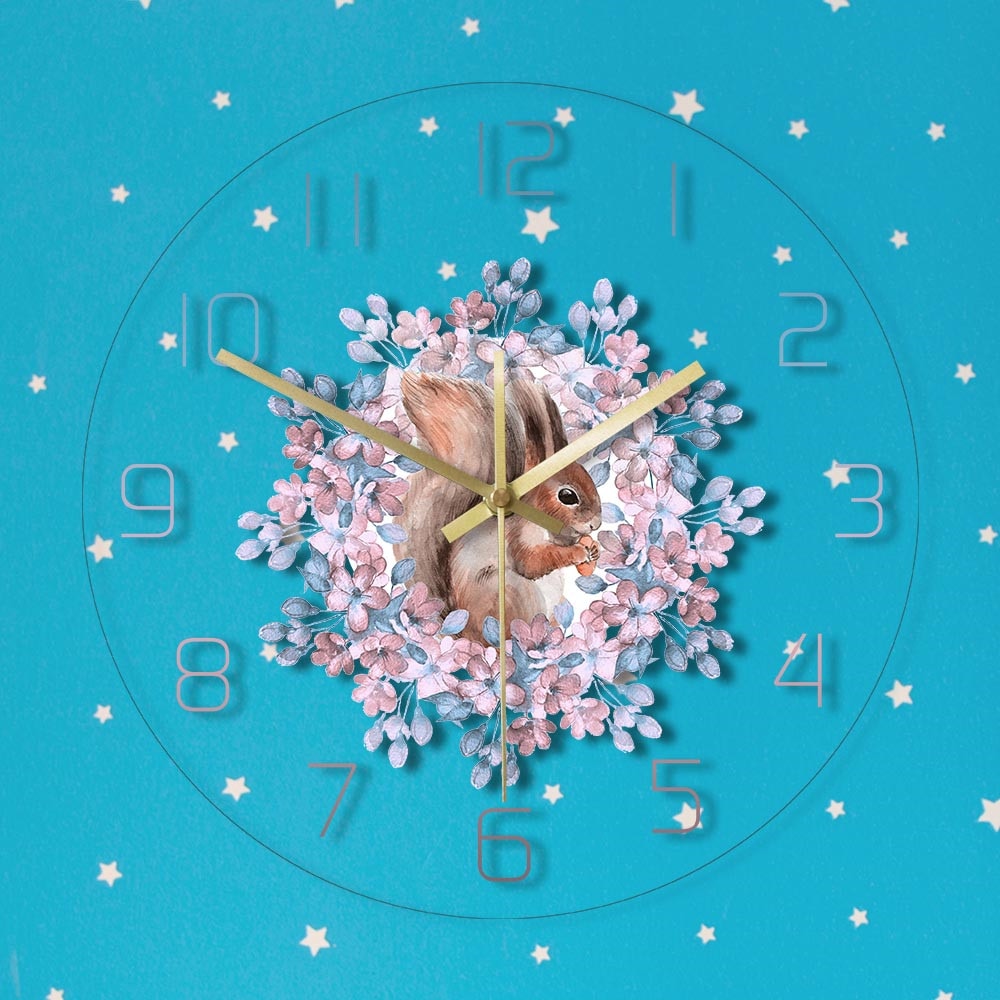 Tämä kello on paljon enemmän kuin pelkkä seinäkello; se on tunnelmanluoja, joka tuo ripauksen luontoa ja leikkisyyttä suoraan kotiisi. Jokainen yksityiskohta on harkittu – oravan pehmeät sävyt ja herkät kukat luovat unenomaisen kokonaisuuden, joka inspiroi ja rauhoittaa. Se on täydellinen valinta sinulle, joka rakastat luontoa, arvostat persoonallista sisustusta ja etsit esinettä, joka kertoo tarinaa. Tämä kello toimii myös upeana lahjaideana, ilahduttaen saajaansa pitkään. Anna seiniesi herätä eloon ja heijastaa persoonallista tyyliäsi tällä viehättävällä ja ajattomalla designilla.