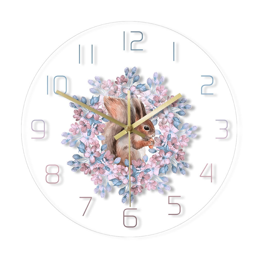 Kuvittele tämä ihastuttava koristeellinen seinäkello orava-aiheella sisustuksesi keskipisteenä. Se ei ole vain ajan näyttäjä, vaan pikemminkin taideteos, joka herättää hymyn huulillesi joka kerta, kun vilkaiset sitä. Kellon herkkä ja viehättävä muotoilu, jossa pieni orava nauttii herkkupalastaan pastellinsävyisten kukkien ympäröimänä, luo kotiisi harmonisen ja kutsuvan tunnelman. Täydellinen lisä olohuoneeseen, makuuhuoneeseen, lastenhuoneeseen tai keittiöön, tämä kello yhdistää käytännöllisyyden ja lumoavan estetiikan, tehden jokaisesta hetkestä hieman kauniimman.