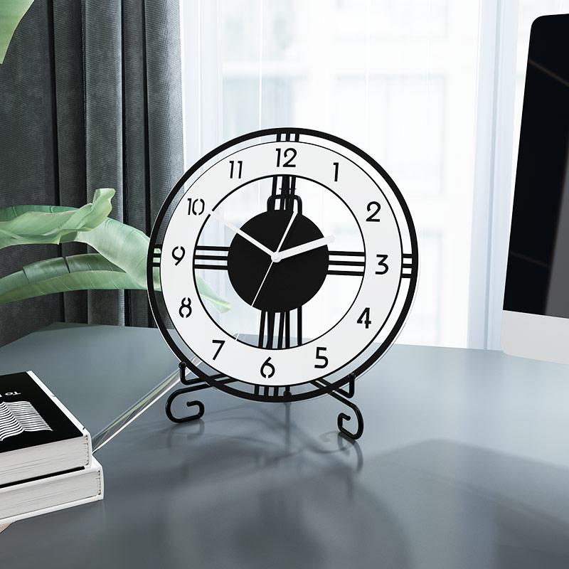 Etsitkö täydellistä yksityiskohtaa, joka yhdistää modernin designin ja käytännöllisyyden? Tämä upea moderni pyöreä pöytäkello metallijalustalla on juuri sitä! Sen minimalistinen mustavalkoinen ulkoasu ja tyylikäs metalliteline tekevät siitä katseenvangitsijan missä tahansa huoneessa. Olipa kyseessä olohuoneen sivupöytä, makuuhuoneen yöpöytä tai toimiston työpiste, tämä kello tuo tilaan ripauksen eleganssia ja selkeyttä. Se ei ainoastaan näytä aikaa tarkasti, vaan toimii myös modernina sisustuselementtinä, joka täydentää saumattomasti kotisi estetiikkaa.