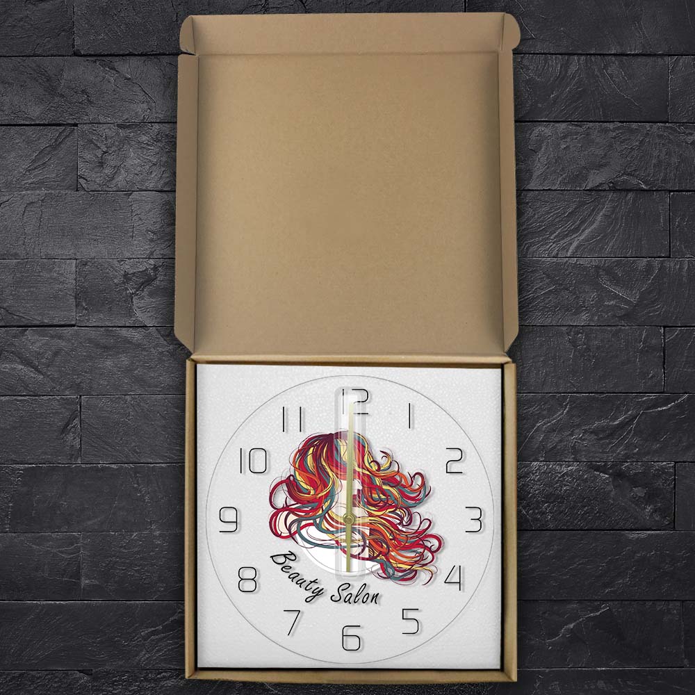 Kuvittele asiakkaidesi ilmeet heidän astuessaan sisään ja huomatessaan tämän ainutlaatuisen seinäkellon. Sen moderni muotoilu ja persoonallinen kuvitus tekevät siitä välittömästi katseenvangitsijan. Se luo ammattimaisen, mutta samalla rennon ja inspiroivan ilmapiirin, joka kannustaa asiakkaita viihtymään ja palaamaan. Kello on valmistettu laadukkaista materiaaleista, mikä takaa sen kestävyyden ja selkeän luettavuuden. Kullanväriset osoittimet liikkuvat sulavasti, lisäten ripauksen eleganssia kokonaisuuteen. Anna tilasi puhua puolestaan ja valitse kello, joka kertoo tarinaa kauneudesta ja tyylistä.