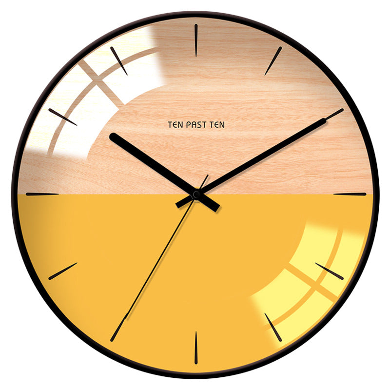 Tämä kello ei ole pelkkä ajannäyttäjä, vaan se on design-esine, joka herättää huomiota. Kupera lasi antaa kellolle syvyyttä ja ainutlaatuisen ulkonäön, heijastaen valoa kauniisti ja luoden visuaalisesti mielenkiintoisen pinnan. Puun ja keltaisen puolikkaan yhdistelmä on raikas ja eloisa, luoden iloisen ja kutsuvan tunnelman. Se on täydellinen tapa lisätä persoonallisuutta tilaan ja luoda keskipiste, joka kertoo tarinaa ajasta ja tyylistäsi.