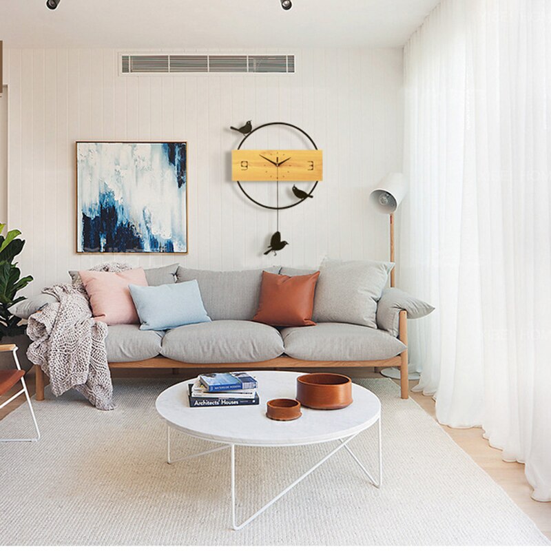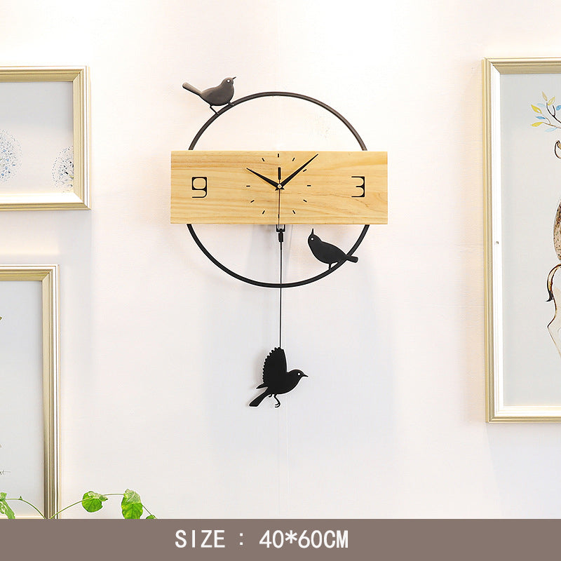 Moderni seinäkello puuta ja lintuja: Ajaton tyyli ja luonnonläheinen tunnelma