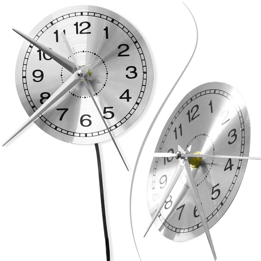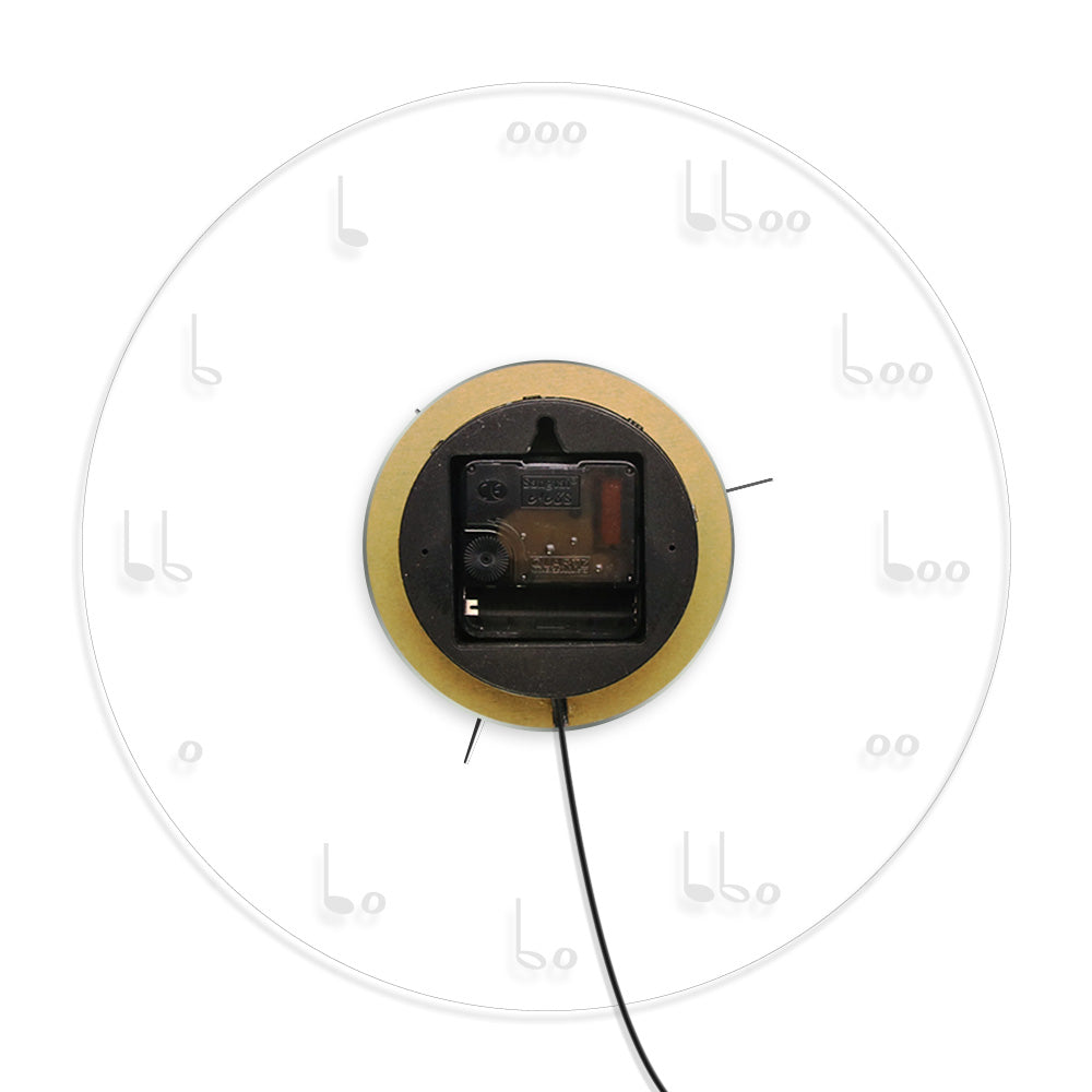 - **Musiikillinen muotoilu:** Perinteisten numeroiden sijaan tyylikkäät nuotit merkkaavat tunnit, tuoden musiikin ilon seinällesi.
