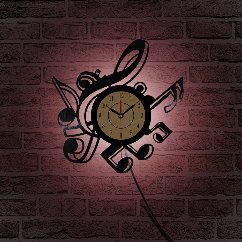 Haluatko lisätä persoonallista charmia ja musiikillista tunnelmaa kotiisi? Musiikki vinyylikello nuoteilla on täydellinen valinta sinulle, joka rakastat musiikkia ja arvostat ainutlaatuista sisustusta. Tämä upea seinäkello, joka on taidokkaasti valmistettu kierrätetystä vinyylilevystä, ei ainoastaan näytä aikaa, vaan myös soittaa hiljaisen sinfonian tilassasi. Sen elegantti nuottimuotoilu, jossa on keskeisenä elementtinä diskanttiavain ja lentäviä nuotteja, muuttaa minkä tahansa seinän katseenvangitsijaksi ja keskustelunaiheeksi. Kuvittele, kuinka se tuo iloa ja inspiraatiota jokaiseen päivääsi, kun aika kuluu musiikin rytmissä.