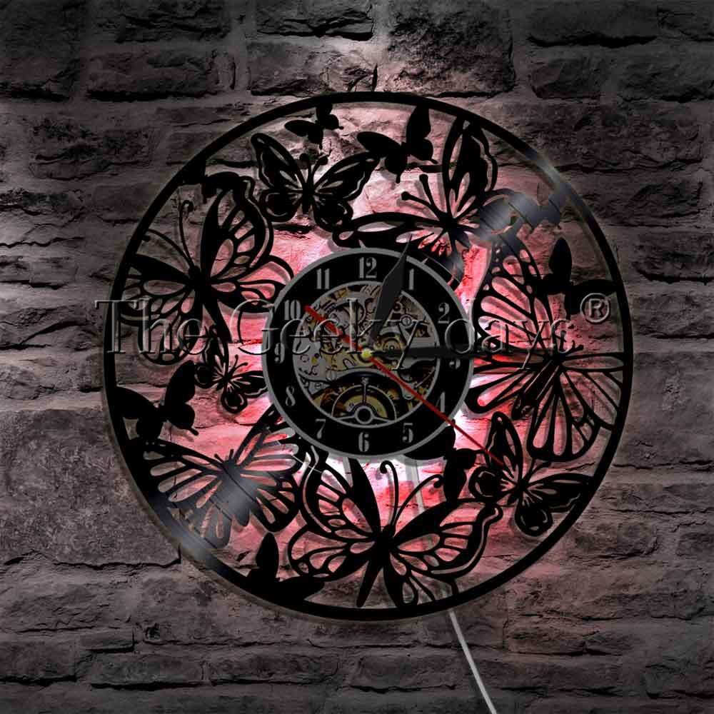 Tee tilastasi eläväinen tällä upealla perhos-aiheinen vinyylilevy seinäkello -mallilla!