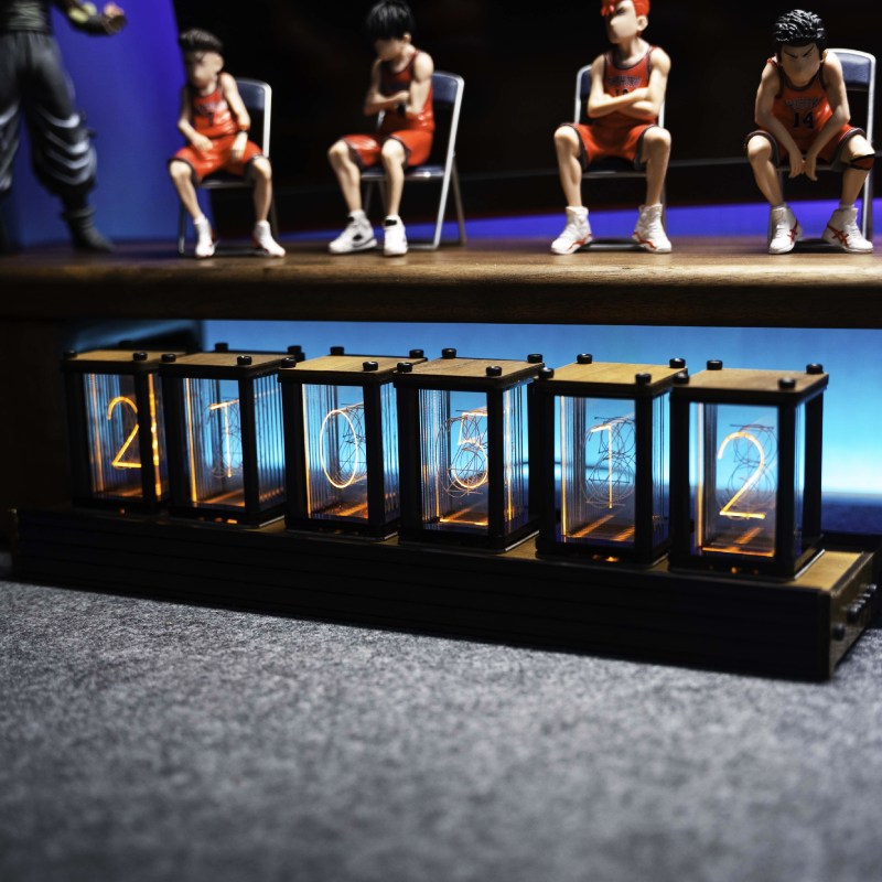Tämä kello ei ole pelkkä ajannäyttäjä, se on sisustuselementti, joka kertoo tarinaa. Sen puusta ja metallista valmistettu runko, yhdistettynä läpinäkyviin Nixie-putkiin, luo täydellisen yhdistelmän vintage-tyyliä ja minimalistista moderniutta. Voit kuvitella sen olohuoneen sohvapöydällä, tyylikkäänä yksityiskohtana työpöydälläsi tai jopa makuuhuoneen yöpöydällä tuomassa pehmeää valoa. Jokainen putki syttyy vuorollaan näyttäen kellonajan hypnoottisella ja vangitsevalla tavalla, luoden ainutlaatuisen visuaalisen kokemuksen. Se on täydellinen lahja teknologian ja retro-esineiden ystäville.