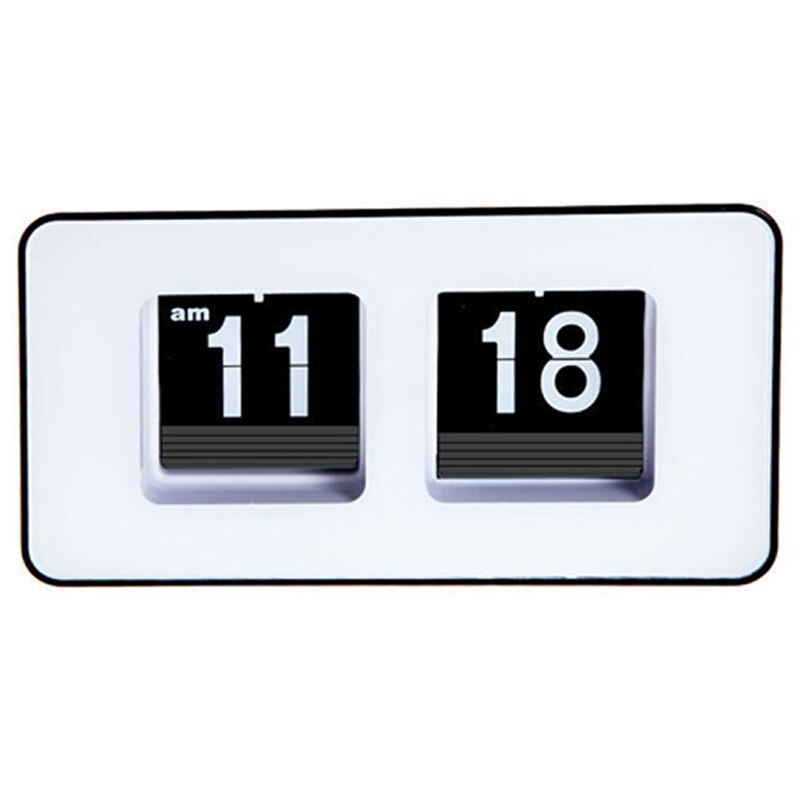 Miksi valita tavallinen kello, kun voit nauttia joka hetkestä? Meidän Retro tyylinen automaattinen flippikello muuttaa ajan katselun elämykseksi. Sen automaattinen flippimekanismi vaihtaa numeroita pehmeästi ja äänettömästi, luoden tyydyttävän ja hieman hypnoottisen visuaalisen efektin. Suuret, valkoiset numerot mustalla pohjalla ovat erittäin helppolukuisia kauempaakin, ja "am"-merkintä pitää sinut selvillä aamusta ja illasta. Tämä kello on suunniteltu niille, jotka arvostavat estetiikkaa ja toimivuutta – se on taatusti keskustelunaihe ja tuo palan nostalgiaa arkeen ilman, että sinun tarvitsee luopua nykypäivän mukavuuksista. Se sopii täydellisesti työpöydälle, kirjahyllyyn tai yöpöydälle.