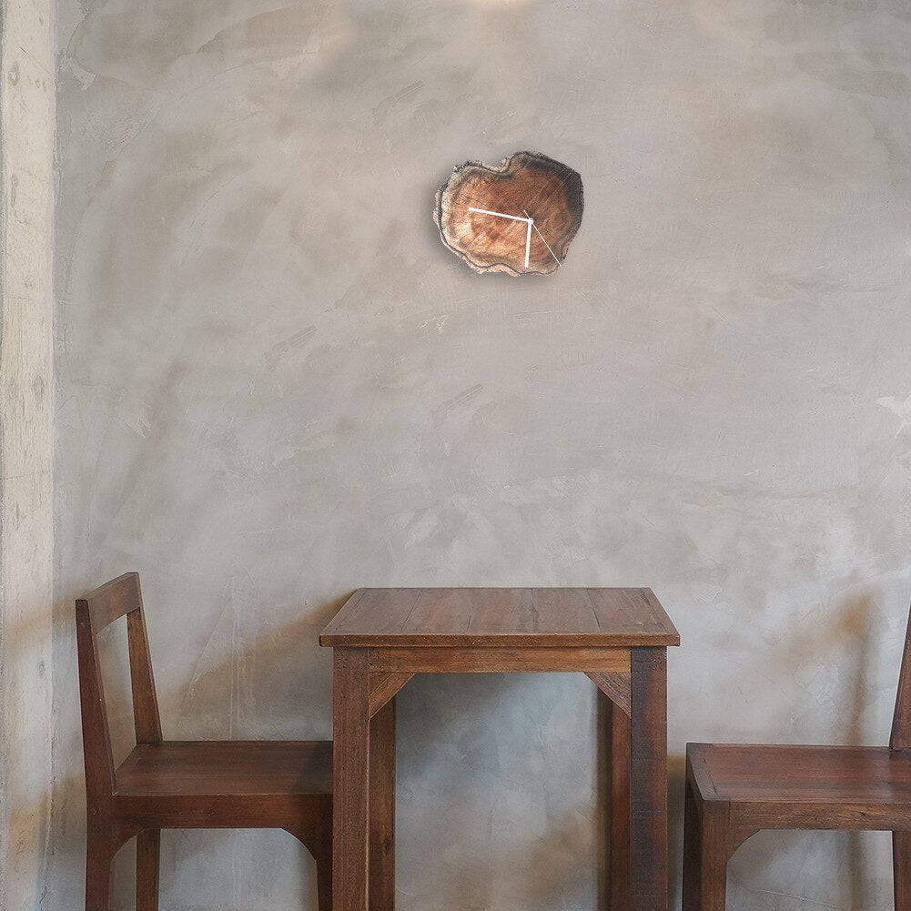 - Uniikki muotoilu: Jokainen kello on leikattu aidosta puunrungosta, mikä takaa ainutlaatuisen muodon ja syykuvion.