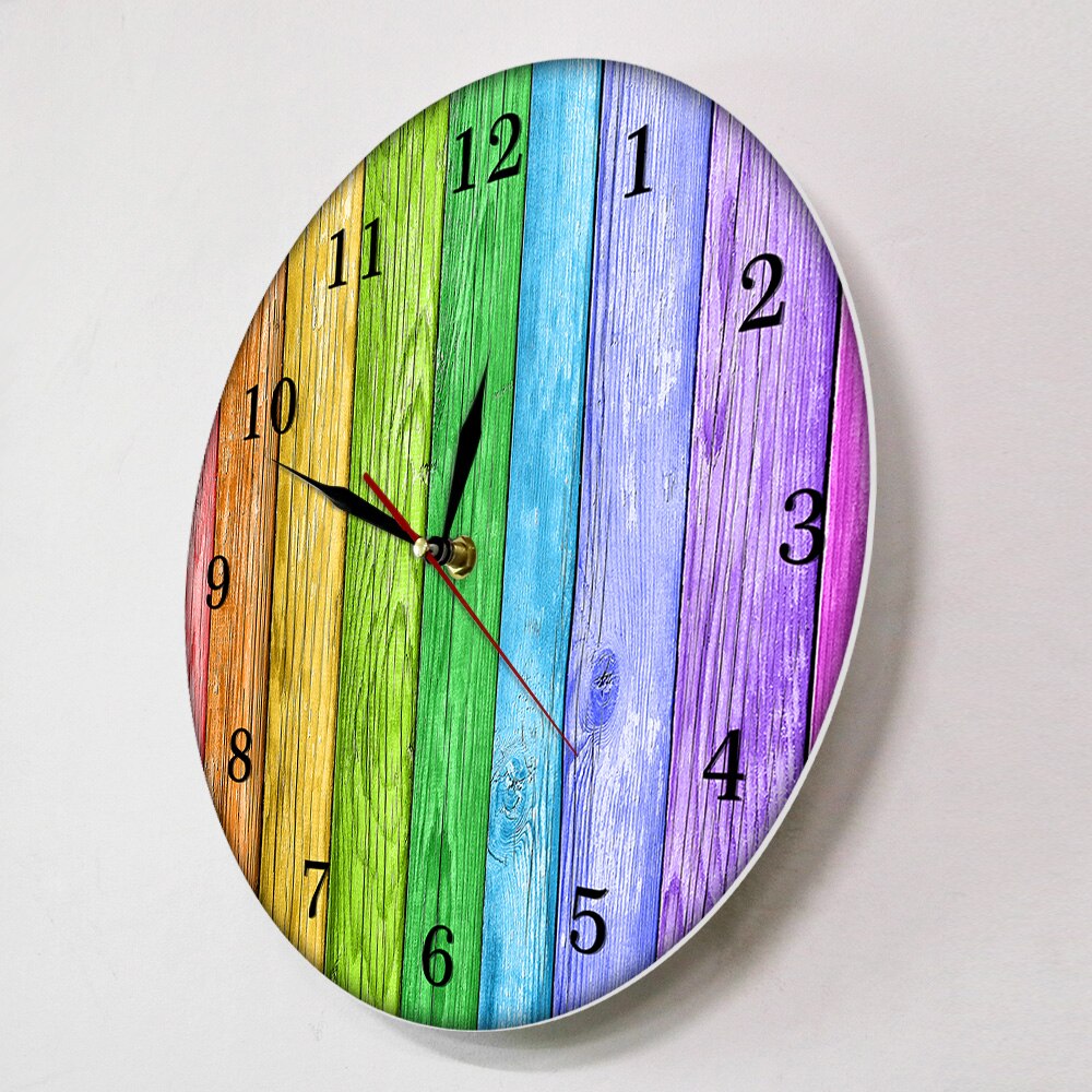 Kuvittele, kuinka tämä eloisa kello muuttaa tavallisen seinän huoneen keskipisteeksi. Sen sateenkaaren värit hehkuvat kauniisti, ja puun syyt tuovat ripauksen rustiikkista charmia, joka sopii moneen eri sisustustyyliin – modernista boheemiin ja perinteisestä leikkisään. Se on oivallinen tapa lisätä ripauksen väriä ja valoa, erityisesti tiloihin, jotka kaipaavat piristystä. Olipa kyseessä olohuone, lastenhuone, keittiö tai vaikka luova työtila, tämä kello luo ympärilleen positiivista energiaa ja tekee ajankulusta visuaalisesti miellyttävämpää. Selkeät numerot varmistavat, että aika on helppo lukea yhdellä silmäyksellä.