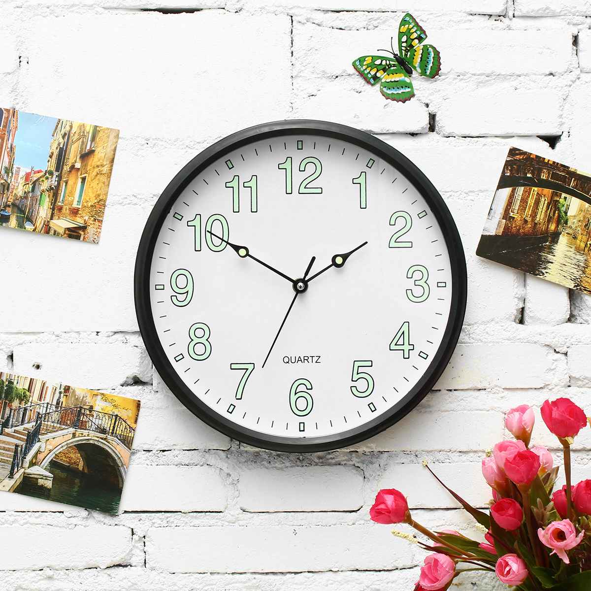 Tämä seinäkello ei ole pelkkä kellonaikaa näyttävä esine, vaan se luo myös kutsuvaa tunnelmaa. Sen erityinen pimeässä hohtava ominaisuus on saanut virtansa päivänvalosta, jonka kello on imenyt itseensä. Kun huone pimenee, numerot ja osoittimet alkavat loistaa lempeästi vihreällä valolla, tarjoten selkeän näkymän aikaan ilman häikäisevää kirkkautta. Unohda ärsyttävät tikittävät äänet – tämän kellon hiljainen kvartsikoneisto takaa, että voit nauttia levollisesta rauhasta ilman häiriöitä. Se on ihanteellinen ratkaisu makuuhuoneeseen tai työtilaan, missä hiljaisuus on valttia.