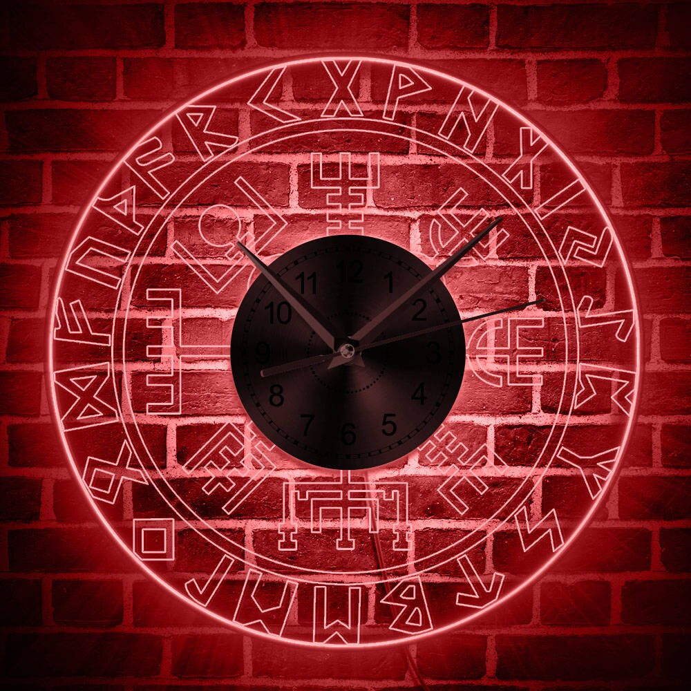 Viikinki-aiheinen LED-seinäkello riimuilla – Ajaton Sisustuselementti Kotiisi